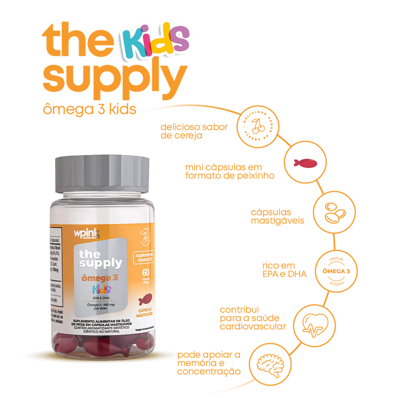 O Ômega 3 kids Wpink suplementos passa por um processo altamente sofisticado e rigoroso, e inúmeros testes laboratoriais, para garantir um alto nível de qualidade, em formato de peixinho, é uma cápsula mastigável incrivelmente pequena em comparação aos ômegas 3 do mercado, facilitando assim a ingestão pelas crianças.